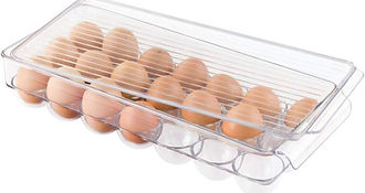 iDesign Plastic Egg Holder Fridge Organizer with Front Handle – 14.57″ x 6.25″ x 3″, Clear