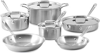 All-Clad D5 5-Ply Brushed Stainless Steel Cookware Set 10 Piece, Induction, Oven Broiler Safe 600F, Kitchen Cooking Set w/ Frying Pans, Sauce Pans, Sauté Pan and Stockpot, Pots and Pans Set, Silver