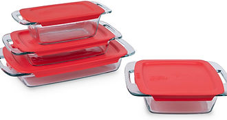 Pyrex Easy Grab 4-Pack Glass Baking Dish Set (1.5QT, 2QT, 3QT, 8″x8″) with BPA-Free Lids, Rectangular Bakeware Set, Dishwasher, Microwave, Freezer & Pre-Heated Oven Safe