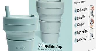 STOJO Collapsible Travel Cup With Straw – Aquamarine, 16oz / 470ml – Reusable To-Go Pocket Size Silicone Cup for Hot and Cold Drinks – Perfect for Camping and Hiking – Microwave & Dishwasher Safe