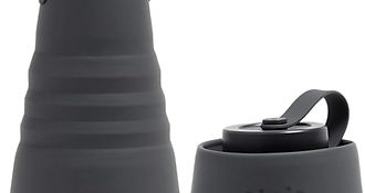 Stojo Collapsible Water Bottle – Carbon Gray, 20oz / 592ml – Leak-Proof Reusable Silicone Travel Cup for Hot & Cold Drinks – Microwave & Dishwasher Safe